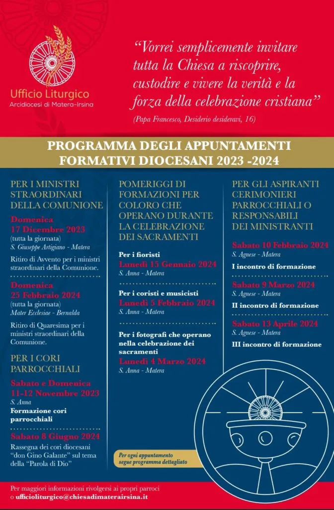 In ascolto delle esigenze delle Parrocchie della Diocesi, l’équipe dell’Ufficio Liturgico Diocesano ha ideato un interessante programma formativo per il questo anno pastorale a beneficio di tutti gli operatori liturgici.