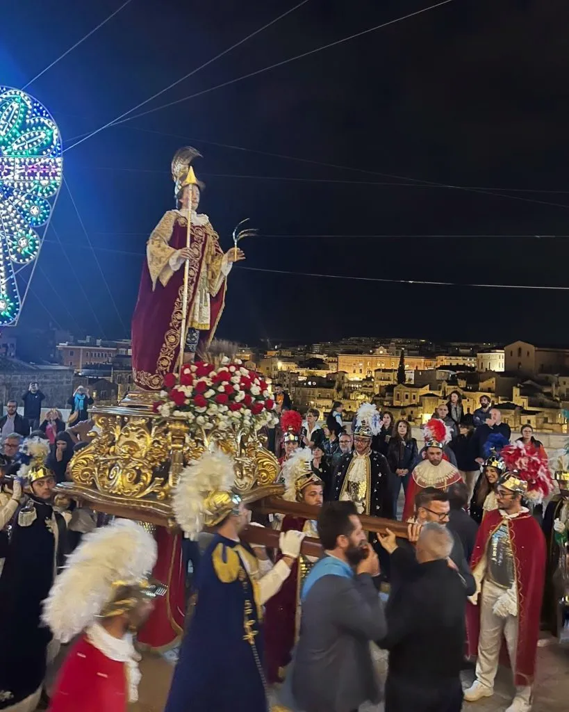 Una buona rappresentanza dalla cittadinanza materana – con il sindaco, dott. Domenico Bennardi, un consigliere comunale, Emanuele Pilato, l’assessora D’Oppido e qualche pubblica autorità –, nonché del Capitolo Cattedrale, dei Cavalieri della Bruna, delle Confraternite di S. Francesco da Paola, di Cristo Flagellato e dei Pastori della Bruna e, infine, degli Angeli del Carro hanno seguito l’effige di S. Eustachio in processione.