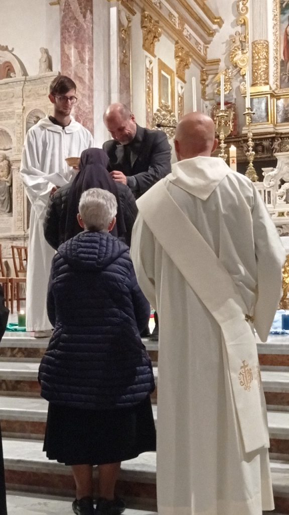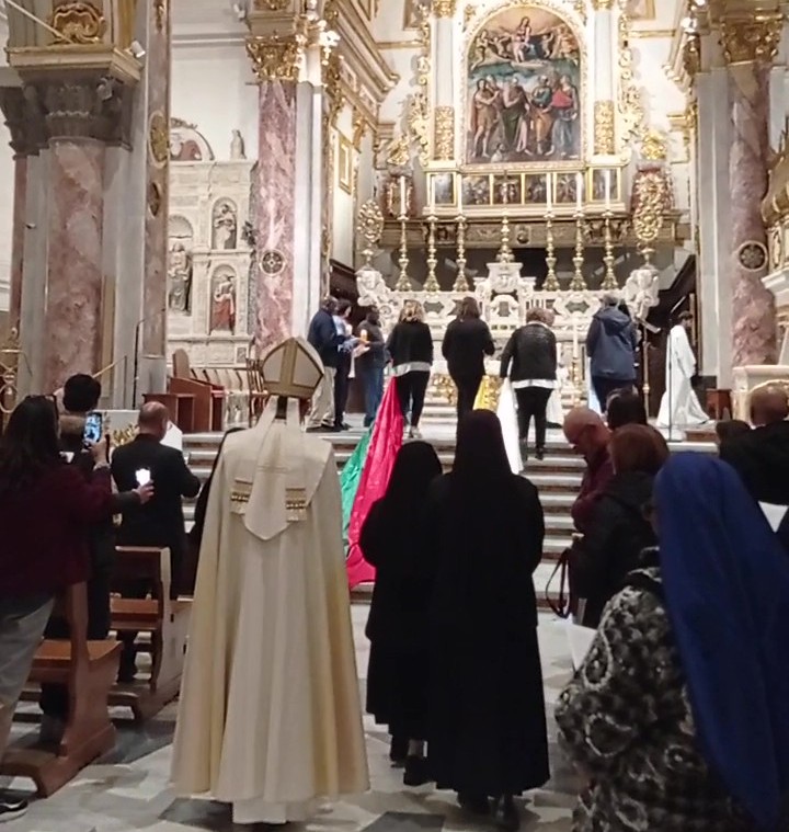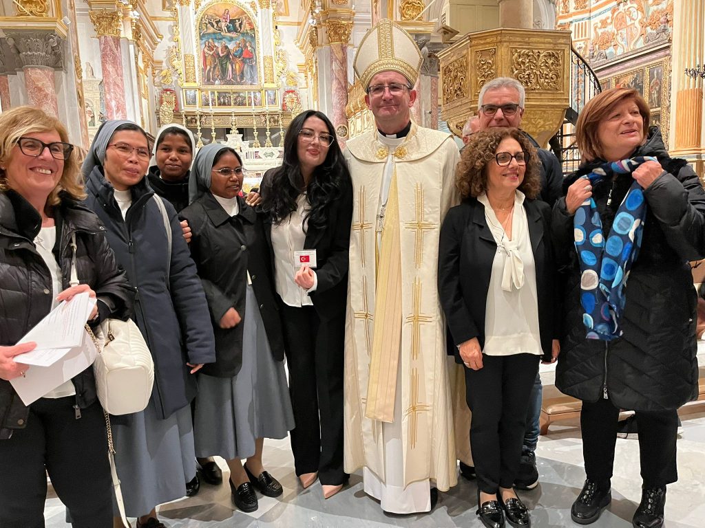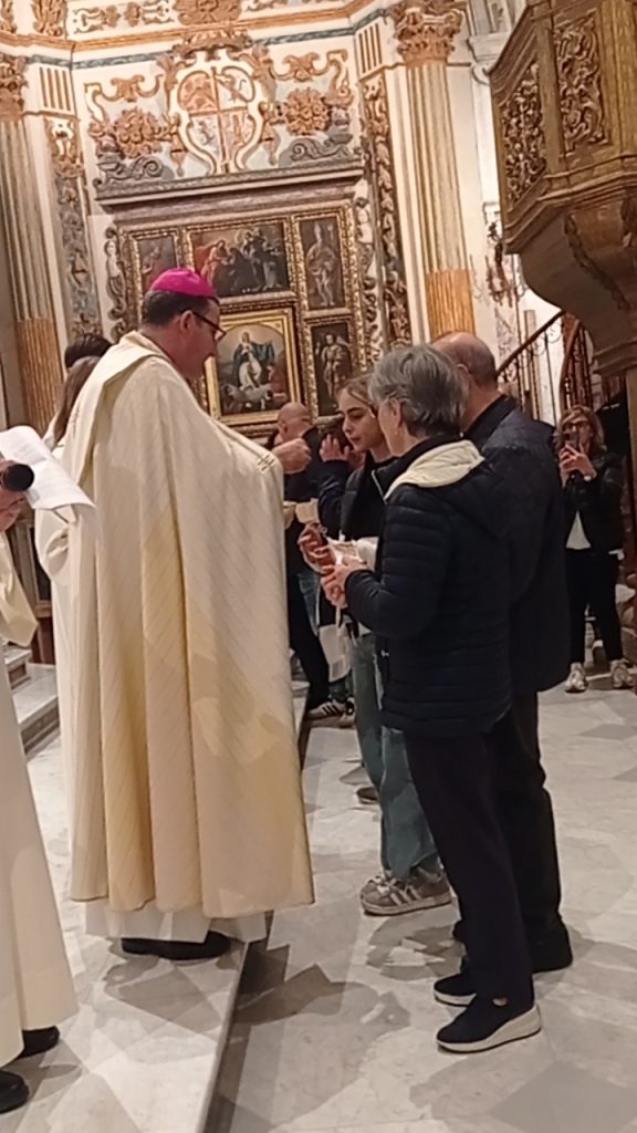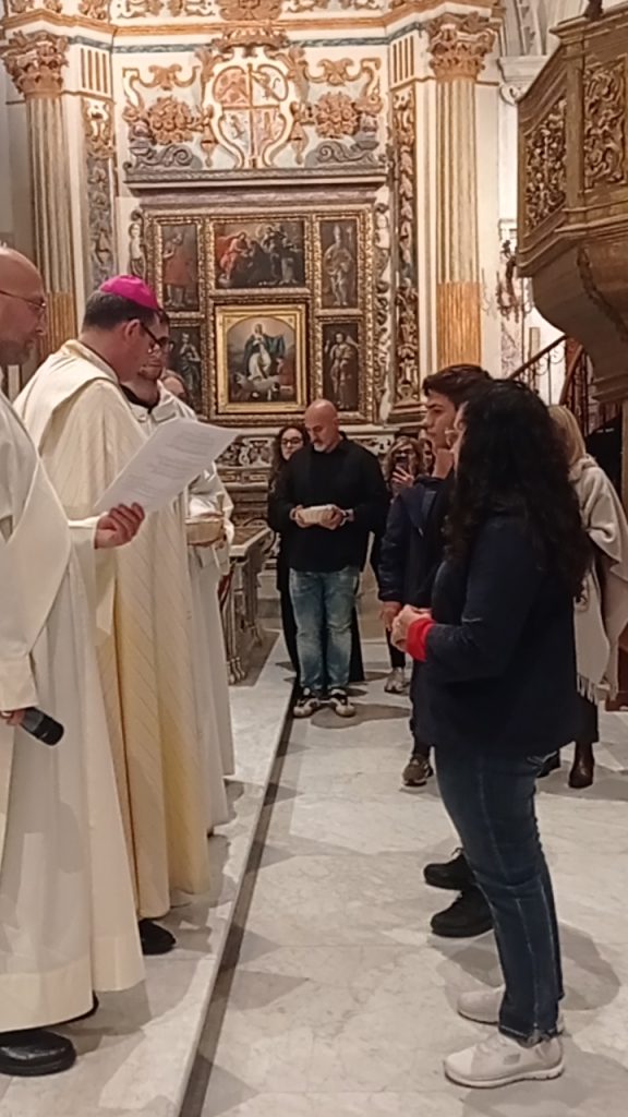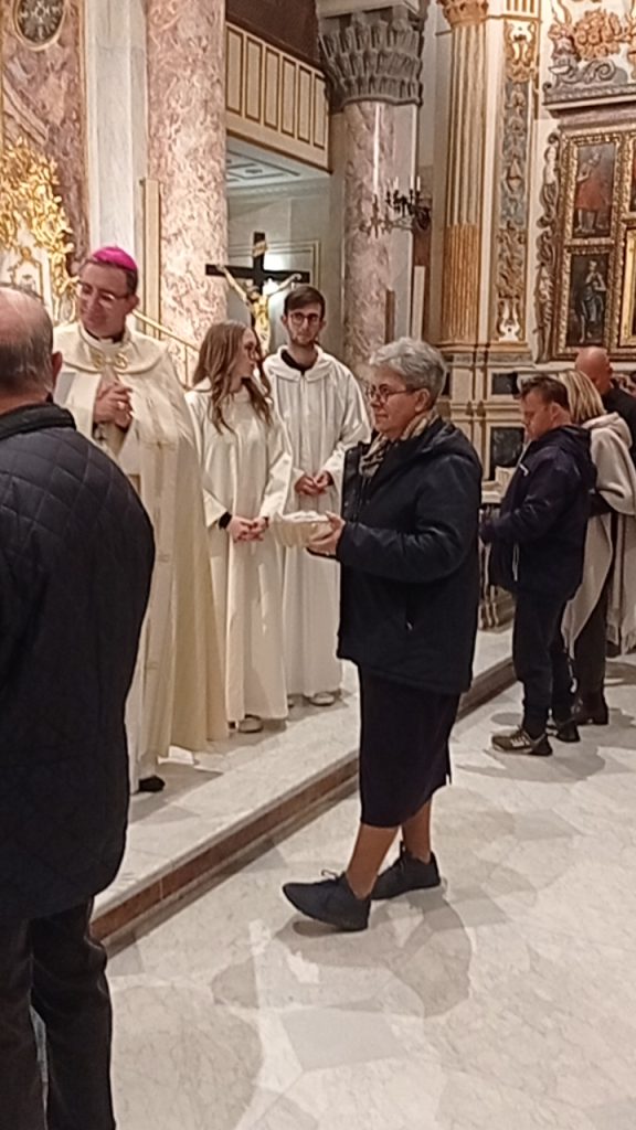 Dopo l’omelia, un altro momento significativo della serata: il mandato missionario conferito ai nuovi religiosi entrati in Diocesi e ai nuovi operatori del Centro Missionario. Con l’emozione visibile nei volti e nel cuore, tutti i chiamati hanno risposto il loro “Eccomi”. A tutti loro, il vescovo Benoni ha conferito la benedizione e il mandato ad essere semi fecondi nelle missioni affidate, portando il messaggio del Vangelo dove c’è più bisogno.