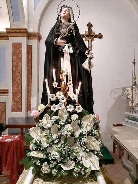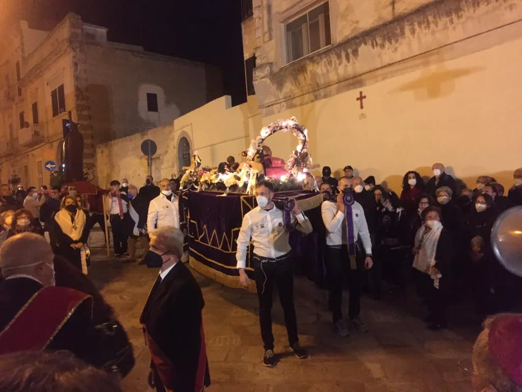 Nella processione i fedeli hanno portato a spalla le statue di Gesù morto, di Cristo Flagellato e della Madonna Addolorata che sono custodite dalla Confraternita di Gesù Flagellato e Maria SS Annunziata.