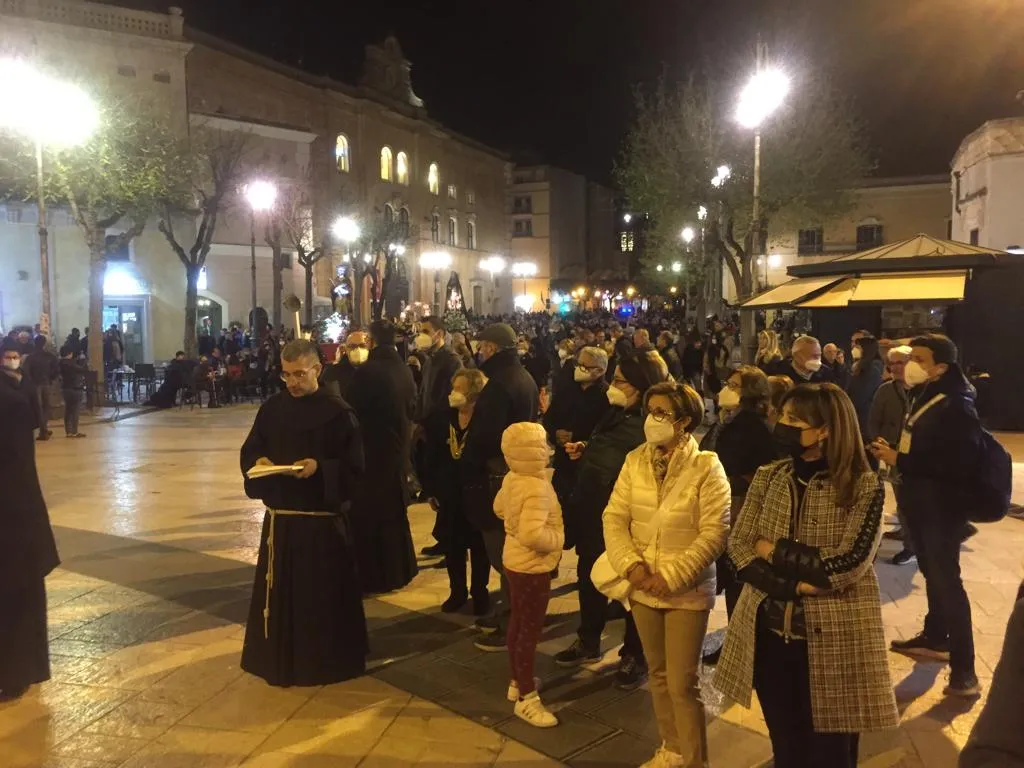 A Matera negli anni si è consolidata la tradizione di tenere una Via crucis che si sviluppava nelle strade del centro storico con tutto il clero diocesano al seguito dell’arcivescovo ed una lunga folla di fedeli. Purtroppo quest’anno, a causa della pandemia, si è deciso di sviluppare un percorso più breve ed un minor numero di persone.