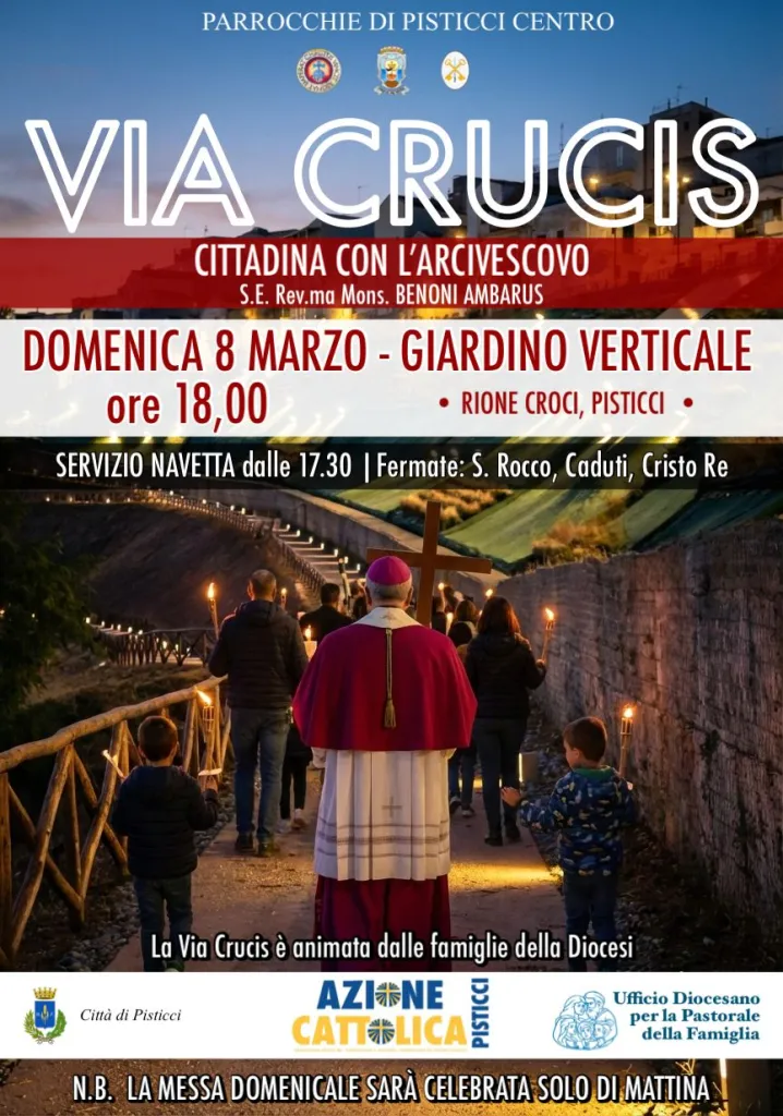 Per la prima volta la pia pratica si snoderà tra i sentieri del nuovo Giardino Verticale nel Rione Croci, un luogo che offrirà ai fedeli una cornice suggestiva, inedita, raccolta. A presiedere la celebrazione sarà, per la prima volta, l’arcivescovo mons. Benoni Ambarus. Tanta l’attesa della comunità locale.