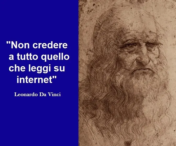 Questo meme di Internet gira in mille versioni e vede sempre come protagonista un personaggio storico, morto da decenni se non da secoli, e la frase: “Non credere a tutto quello che leggi su Internet”. Firmato, in questo caso, Leonardo Da Vinci.